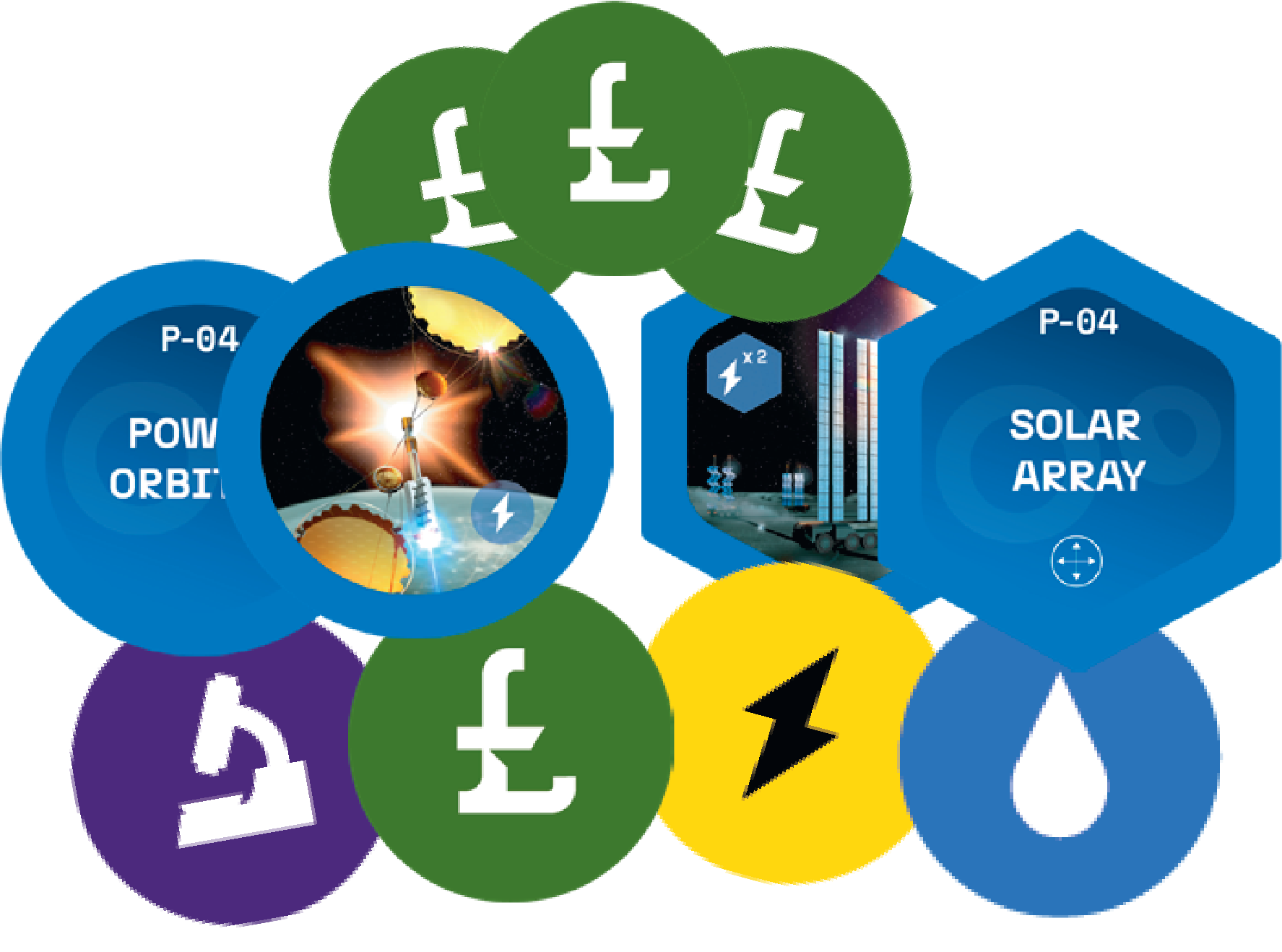 Use your resources to purchase infrastructure and rockets. Assets remain as blueprints until launched.